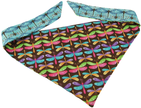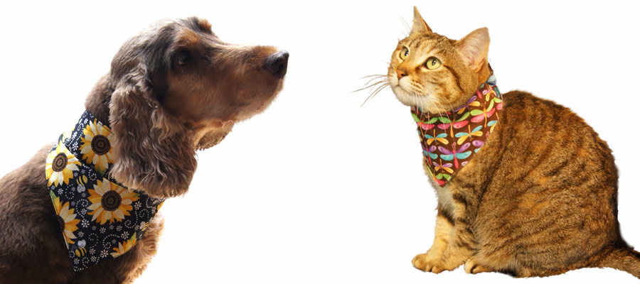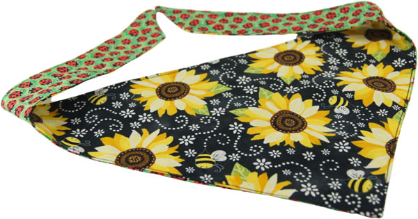 Our reversible tie-on pet bandanas are handmade from two coordinating soft, cotton fabrics giving you two choices with each bandana. Simply fasten around your pet’s neck with a loose knot to secure with the matching ties. Ties can be folded in half to lessen bunching around the neck and show the reverse pattern.